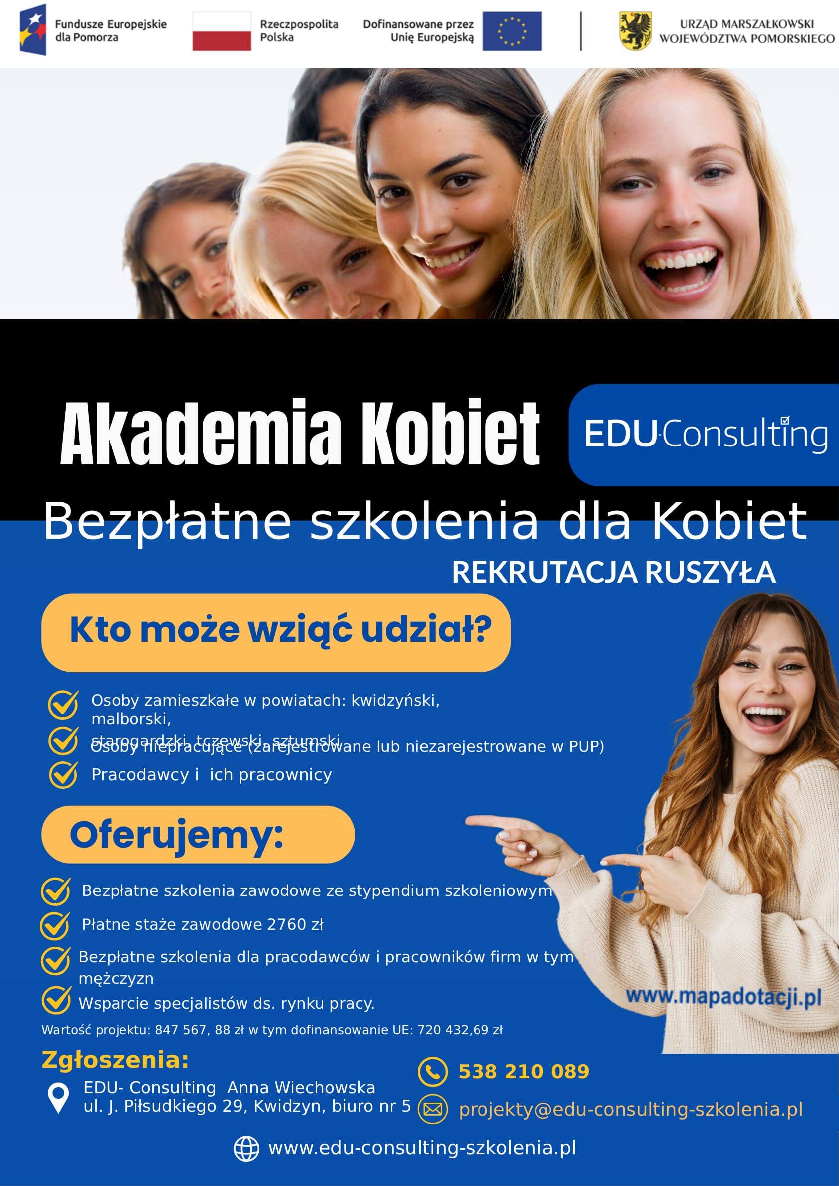 Nasza firma otrzymała dotację z Unii Europejskiej na realizację projektu „Akademia Kobiet”. Numer projektu FEPM.05.04-IZ.00-0081/25